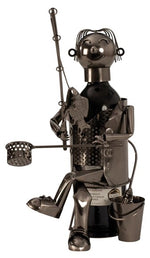 Breng een speels en karaktervol accent in je interieur met deze metalen wijnfleshouder in de vorm van een vissende man. Deze originele wijnstandaard combineert functionaliteit met kunstzinnig design: de visser lijkt de wijnfles moeiteloos in balans te houden, waardoor een bijzonder “zwevend” effect ontstaat.
