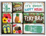 De metalen deur van je koelkast is een ideaal magneetbord. Dat weet iedereen en iedereen wil wel eens een notitiebriefje, een herinnering, een bericht, een ansichtkaart, een afspraak, een foto of een krantenknipsel ophangen. In de keuken komt iedereen en dat is dus de perfecte plek. Wat vaak ontbreekt zijn aantrekkelijke magneten die goed houden en er ook nog eens decoratief uitzien. Net zoals de grappige, 9-delige Tiki Bar magneet set inclusief een praktische geschenkbox (70 x 93 x 20 mm).